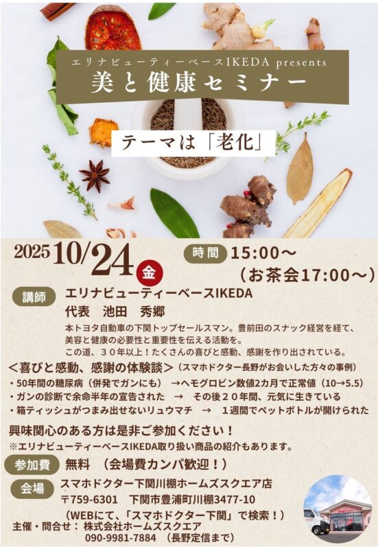 2025年10月18日 10月24日(金) 美と健康セミナー
